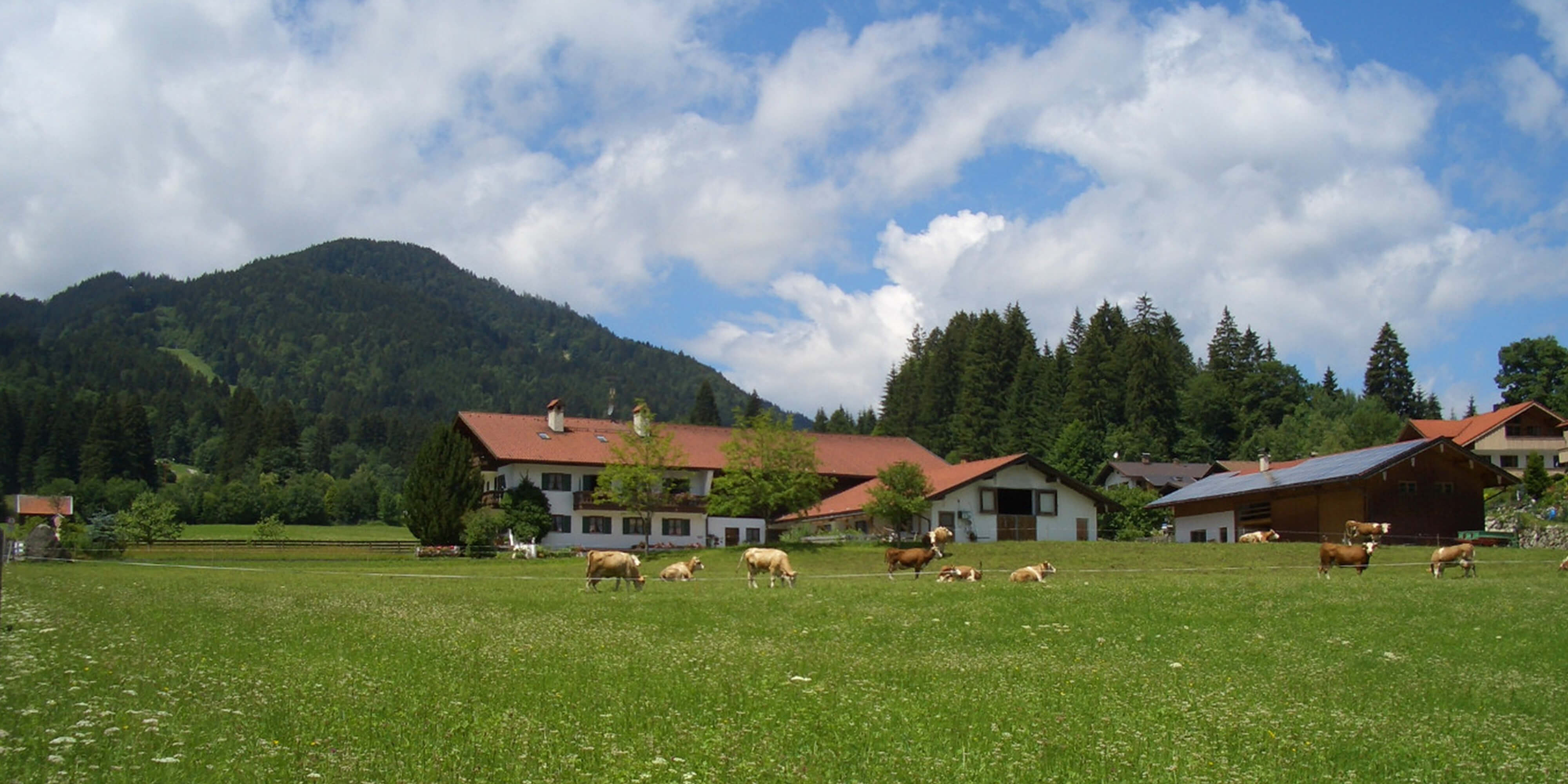 Unser Hof liegt am Ortsrand von Oberammergau, umgeben von grünen Wiesen, direkt am Fuße der Ammergauer Alpen. Hier lebt und arbeitet unsere Familie seit Generationen mit einer großen Leidenschaft für die Landwirtschaft.